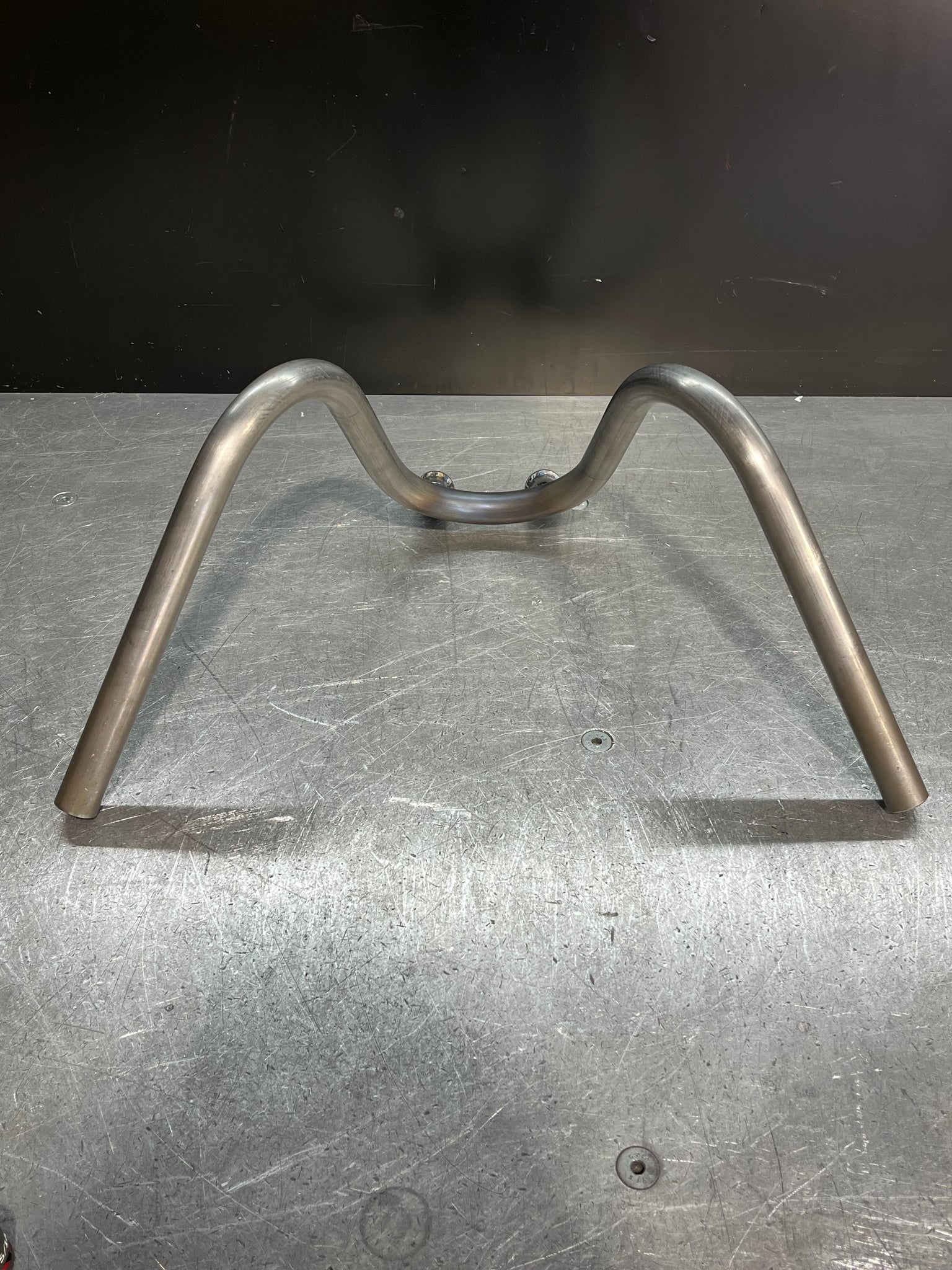 Perfect for that city jammer. These are comfy & provide a good stance with a mild 6° degree lean forward off the top triple tree. In raw steel or powder coat, brush or polished stainless available.